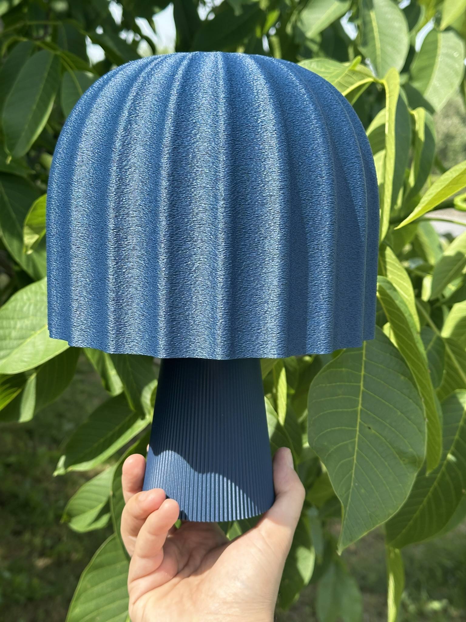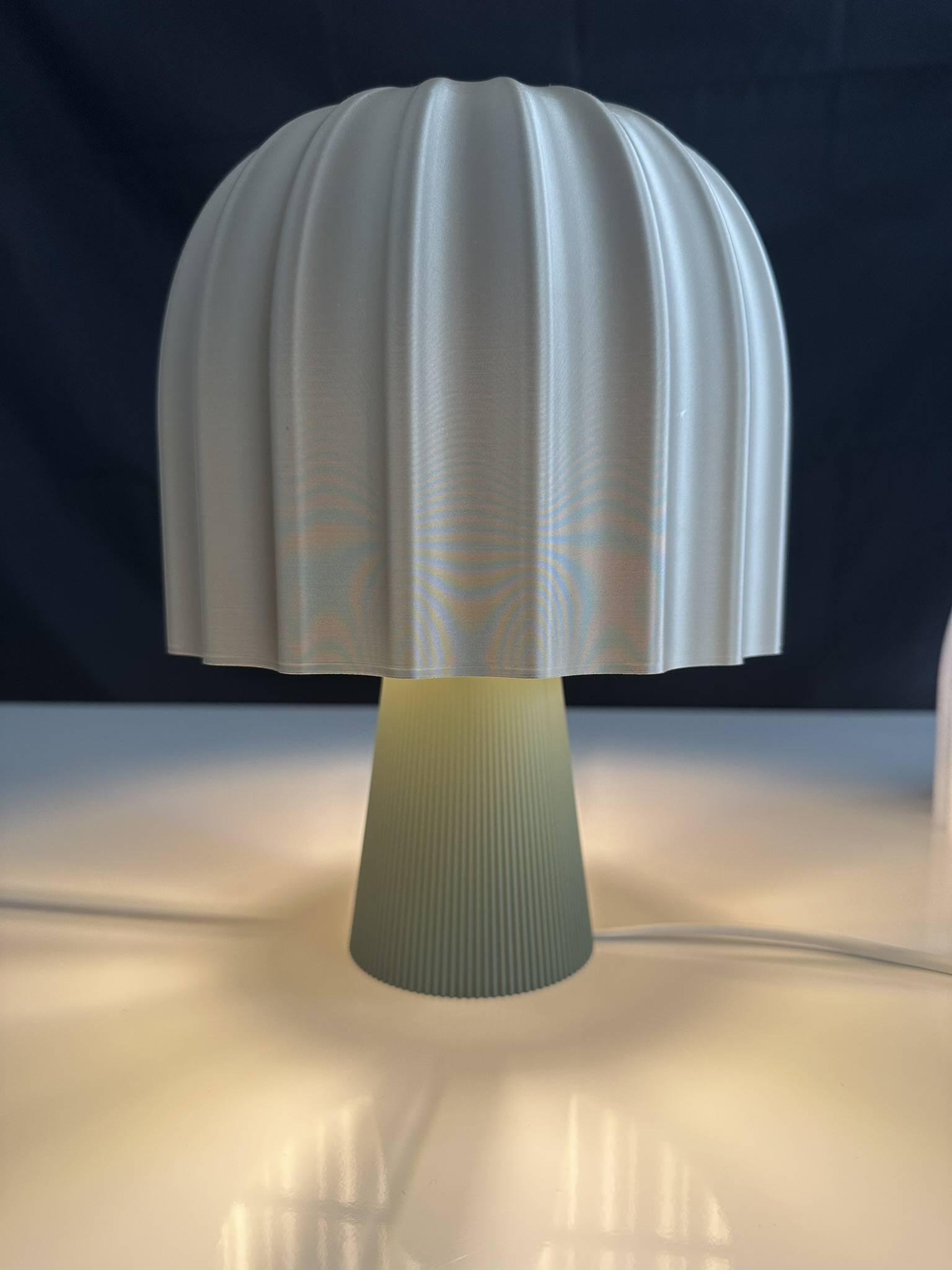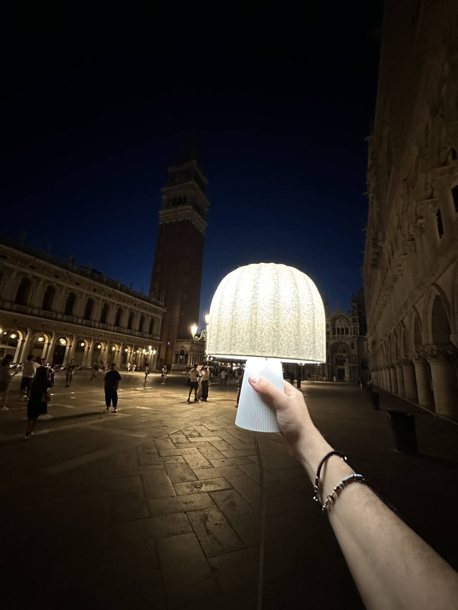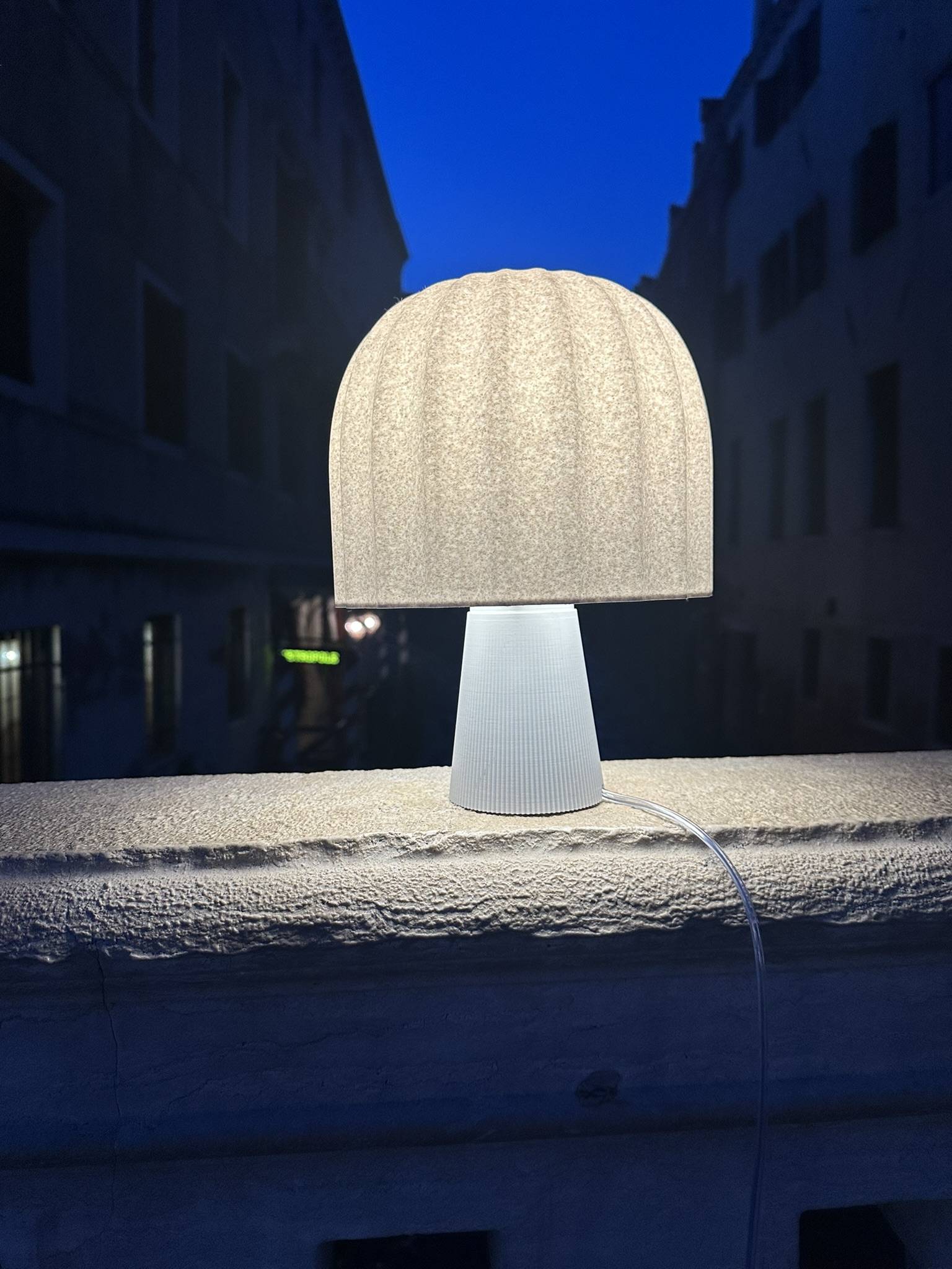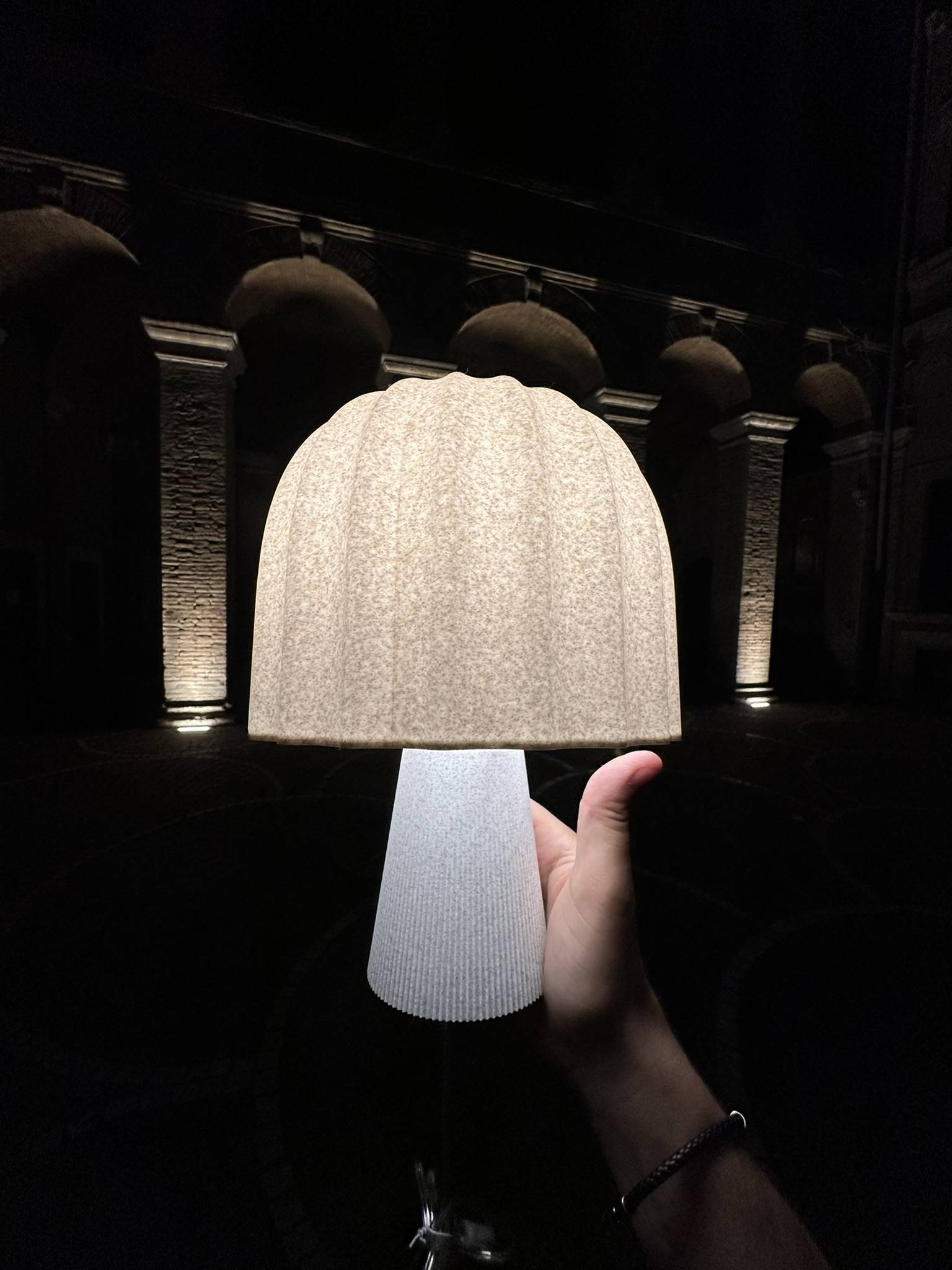 La lampada di Nazzareno Ruspolini si distingue per la sua doppia anima. Quando è spenta, appare come una struttura monolitica e rigida, con una superficie che ricorda la solidità e la raffinatezza del marmo. La sua forma scultorea cattura lo sguardo, imponendosi come un elemento di design che può arricchire qualsiasi ambiente, sia classico che moderno. La Magia della Luce: L’innovazione di questa lampada emerge quando viene accesa: il paralume, che inizialmente appare compatto e opaco ad effetto marmore , si trasforma in un diffusore di luce delicato, simile alla carta di riso. Questa metamorfosi crea un affascinante contrasto tra la solidità percepita a lampada spenta e la leggerezza visiva che si manifesta con la luce, offrendo un’atmosfera calda e accogliente. Materiale e Tecnologia: Il segreto di questa trasformazione risiede nello speciale filamento di PLA utilizzato nella stampa 3D, un materiale biodegradabile a basso impatto ambientale. L’effetto marmo, ottenuto grazie a una particolare miscela di polimeri, dona alla lampada un aspetto lussuoso e artigianale, pur mantenendo tutti i vantaggi della produzione digitale. La precisione della stampa 3D ha permesso di realizzare una struttura sottile ma resistente, capace di far emergere tutte le qualità del materiale utilizzato.