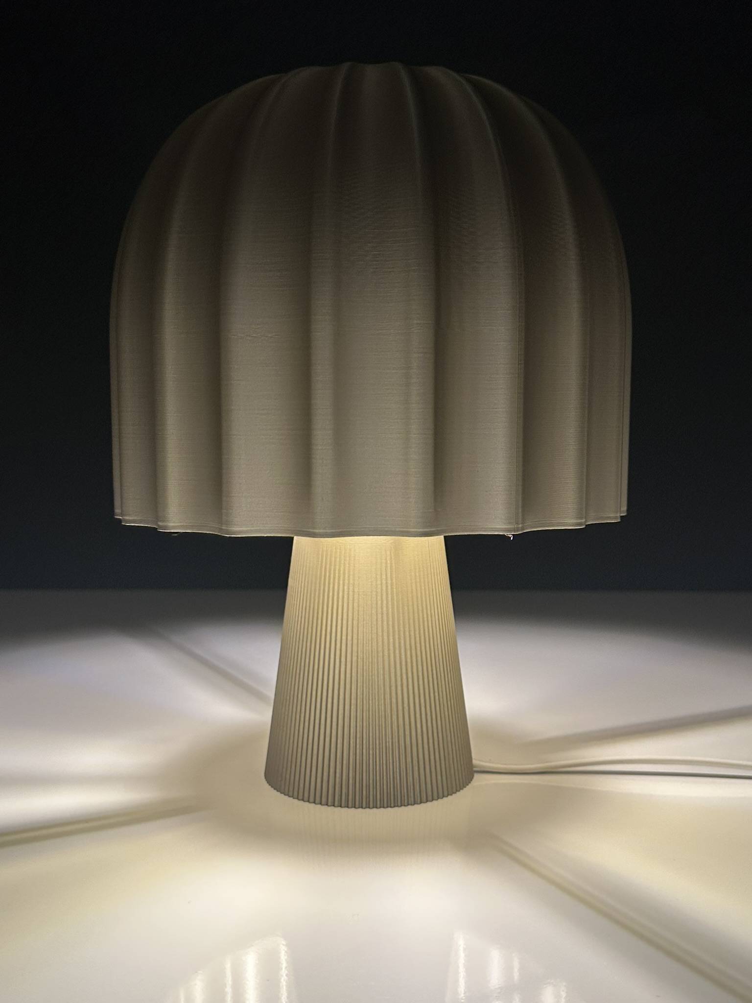 La lampada di Nazzareno Ruspolini si distingue per la sua doppia anima. Quando è spenta, appare come una struttura monolitica e rigida, con una superficie che ricorda la solidità e la raffinatezza del marmo. La sua forma scultorea cattura lo sguardo, imponendosi come un elemento di design che può arricchire qualsiasi ambiente, sia classico che moderno. La Magia della Luce: L’innovazione di questa lampada emerge quando viene accesa: il paralume, che inizialmente appare compatto e opaco ad effetto marmore , si trasforma in un diffusore di luce delicato, simile alla carta di riso. Questa metamorfosi crea un affascinante contrasto tra la solidità percepita a lampada spenta e la leggerezza visiva che si manifesta con la luce, offrendo un’atmosfera calda e accogliente. Materiale e Tecnologia: Il segreto di questa trasformazione risiede nello speciale filamento di PLA utilizzato nella stampa 3D, un materiale biodegradabile a basso impatto ambientale. L’effetto marmo, ottenuto grazie a una particolare miscela di polimeri, dona alla lampada un aspetto lussuoso e artigianale, pur mantenendo tutti i vantaggi della produzione digitale. La precisione della stampa 3D ha permesso di realizzare una struttura sottile ma resistente, capace di far emergere tutte le qualità del materiale utilizzato.